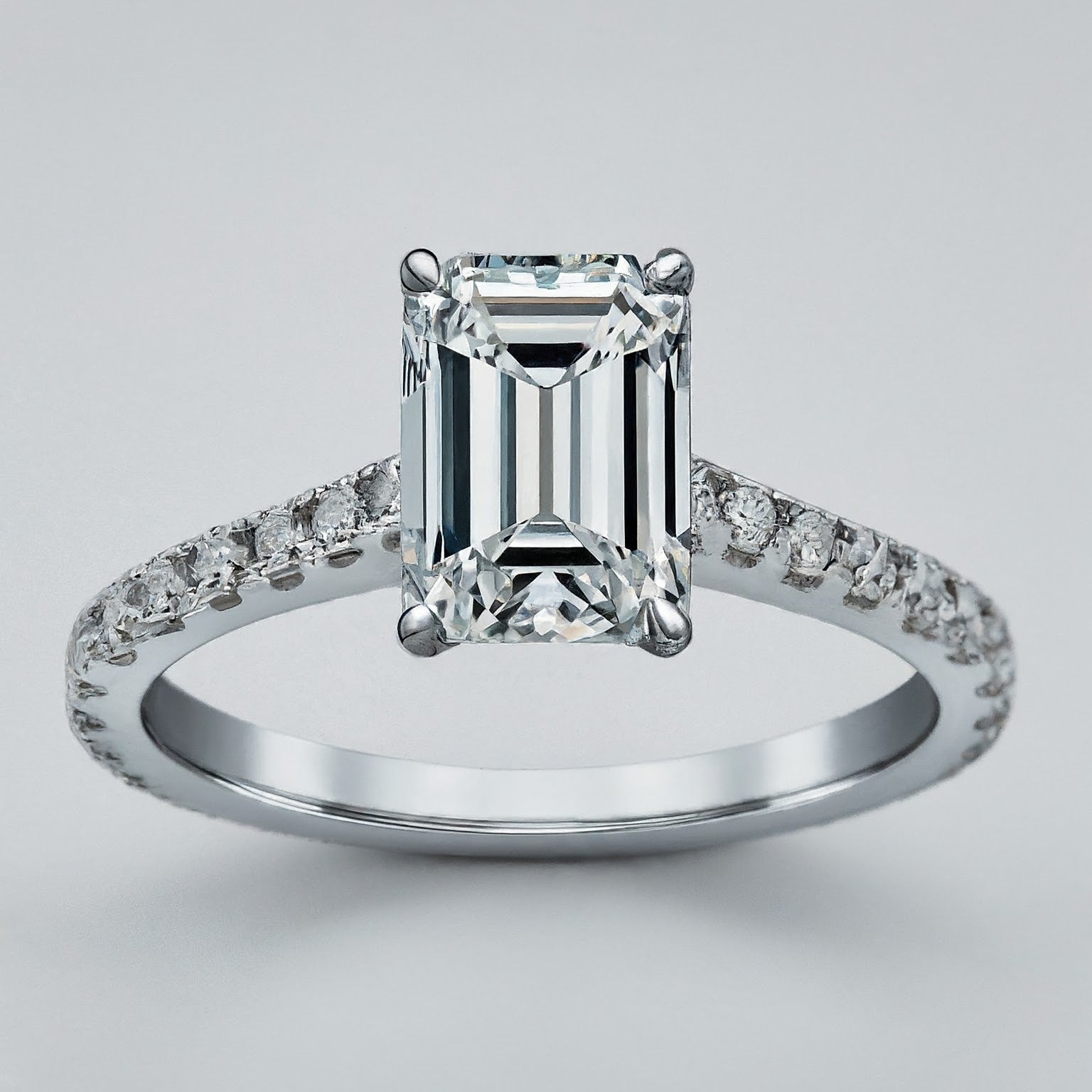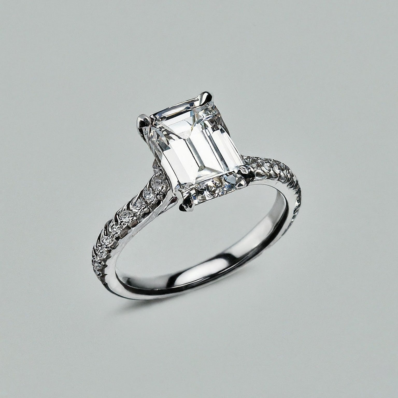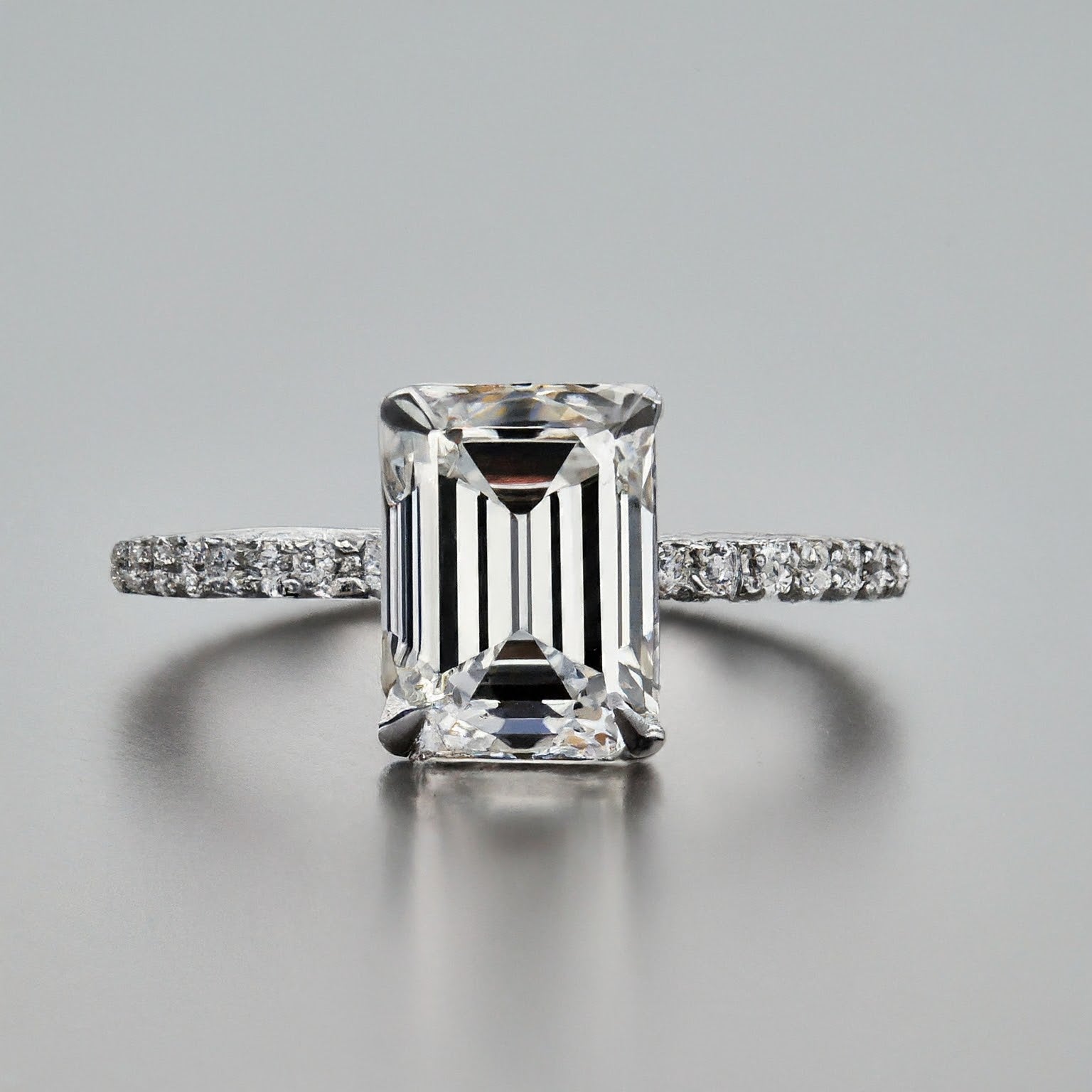 4 Prong Emerald Cut Side Stone Diamond Ring